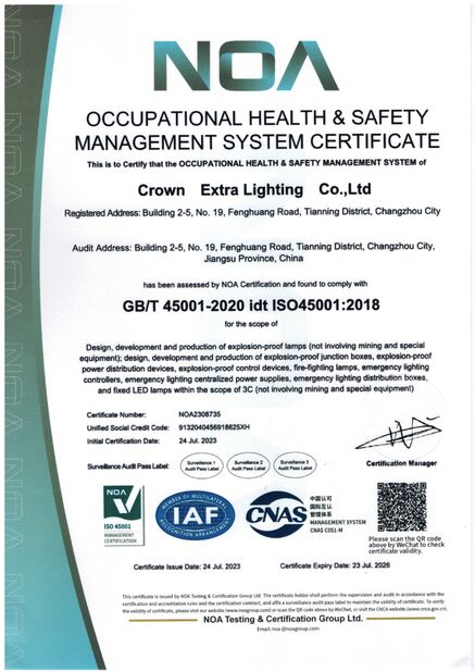 Entsprechend nationalem explosionssicherem Standard GB3836.1/GB3836.2-2010 der Volksrepublik China, hat die Firma den Leistungsnachweis der nationalen beleuchtenden Qualitäts-Überwachungs-und Inspektions-Mitte geführt und das explosionssichere Zertifikat und den Prüfbericht einholte; nachher hat es die Managementsystembescheinigung wie Bescheinigung EU ATEX, ISO9001 erreicht: 2008, RoHS-Bescheinigung und Produktionslizenz. Die Firma wird mit moderner Herstellungsausrüstung ausgerüstet und Testgerät, hat ein in hohem Grade qualifiziertes und erfahrenes, technisches Team R u. D und Führungsteam, in der strengen Übereinstimmung mit dem Managementsystem für Unternehmensmanagement, Konzeption des Produkts, Prozessqualitätskontrolle und Feedback, der Qualität explosionssicherer LED-Beleuchtung und -dienstleistungen effektiv sicherzustellen.