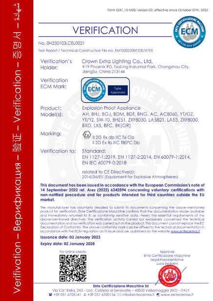 Standard:CE Zahl:ECM 24 ATEX-D QS01 Heft Datum:2024-08-06 Verfallsdatum:2027-0805 |
