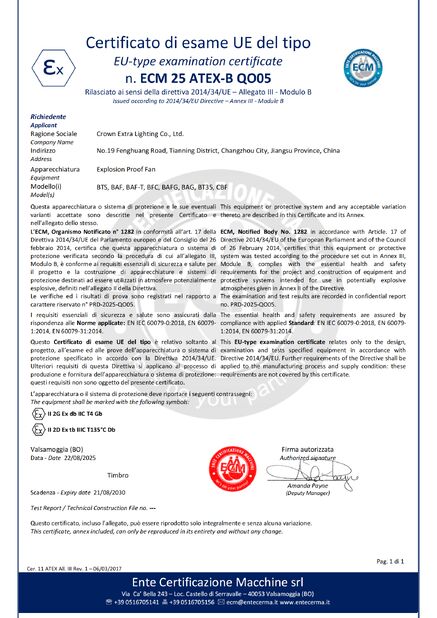 Standard:ATEX Zahl:ECM 24 ATEX-D QS01 Heft Datum:2024-08-06 Verfallsdatum:2027-08-05 |